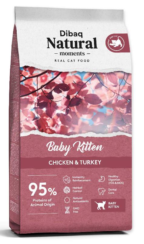 Dibaq Natural Moments Baby Kitten (Курица, индейка) - полнорационный экструдированный корм для котят всех пород с первого месяца жизни до года.
