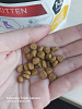 Корм котейке понравился, кушает с удовольствием, по размеру гранулы не большие как раз для котенка. Плюс почитала состав и мне он понравился, вычитала, что в составе молозиво и витамины для растущего организма плюс он подходит стерилизованным котам. Так что кушает котенок и старикан наш подъедает с аппетитом)