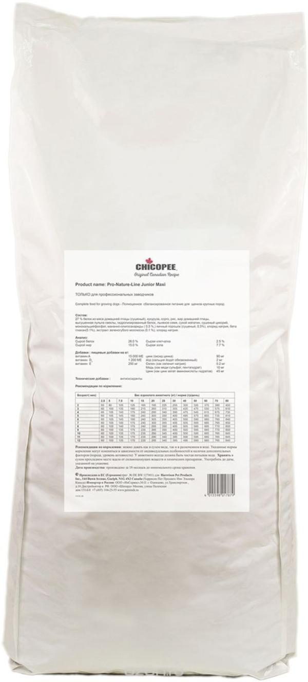 Chicopee Pro Nature Line Junior Maxi - это полноценный сбалансированный корм для щенков и юниоров крупных и гигантских пород.