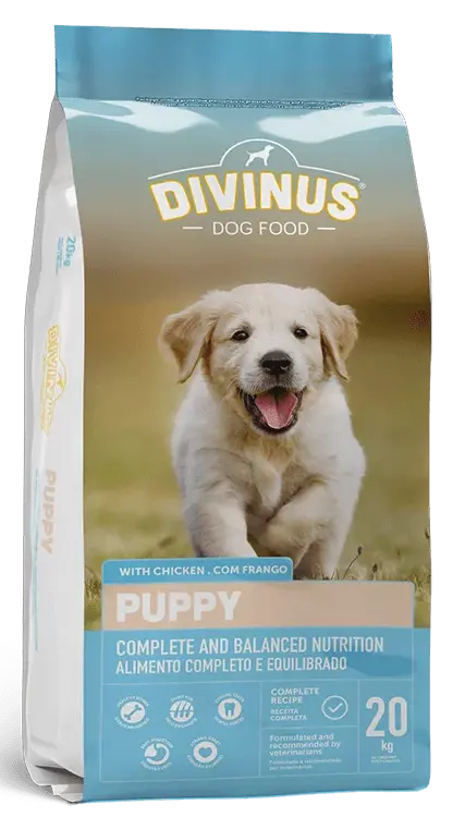 Divinus Puppy (Курица) – полнорационный сухой корм для щенков всех пород. Содержит необходимые витамины и минералы для удовлетворения пищевых потребностей питомца, способствует гармоничному росту и развитию. Благодаря сбалансированной рецептуре корм легко усваивается.