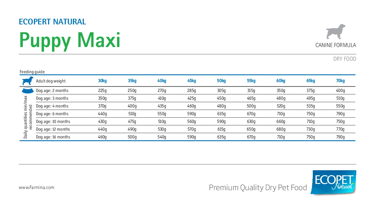Farmina Ecopet Natural Puppy Maxi - полнорационный и сбалансированный корм для щенков крупных пород, беременных и лактирующих сук.