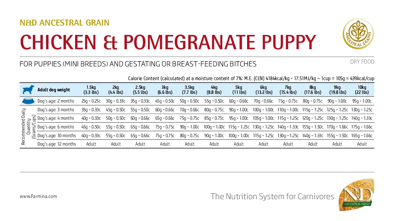 Farmina N&D Ancestral Grain Puppy Mini (Курица и гранат) - полнорационное питание для щенков, беременных и кормящих сук мелких пород с низким содержанием зерна.