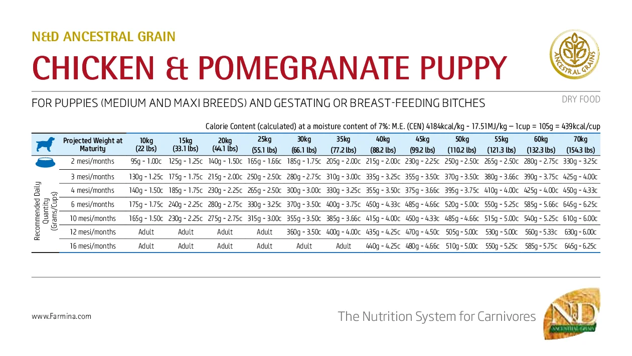 Farmina N&D Ancestral Grain Puppy Medium & Maxi (Курица и гранат) - это полноценный сбалансированный низкозерновой рацион класса холистик с курицей и гранатом для щенков средних и крупных пород, а также для беременных и кормящих сук.