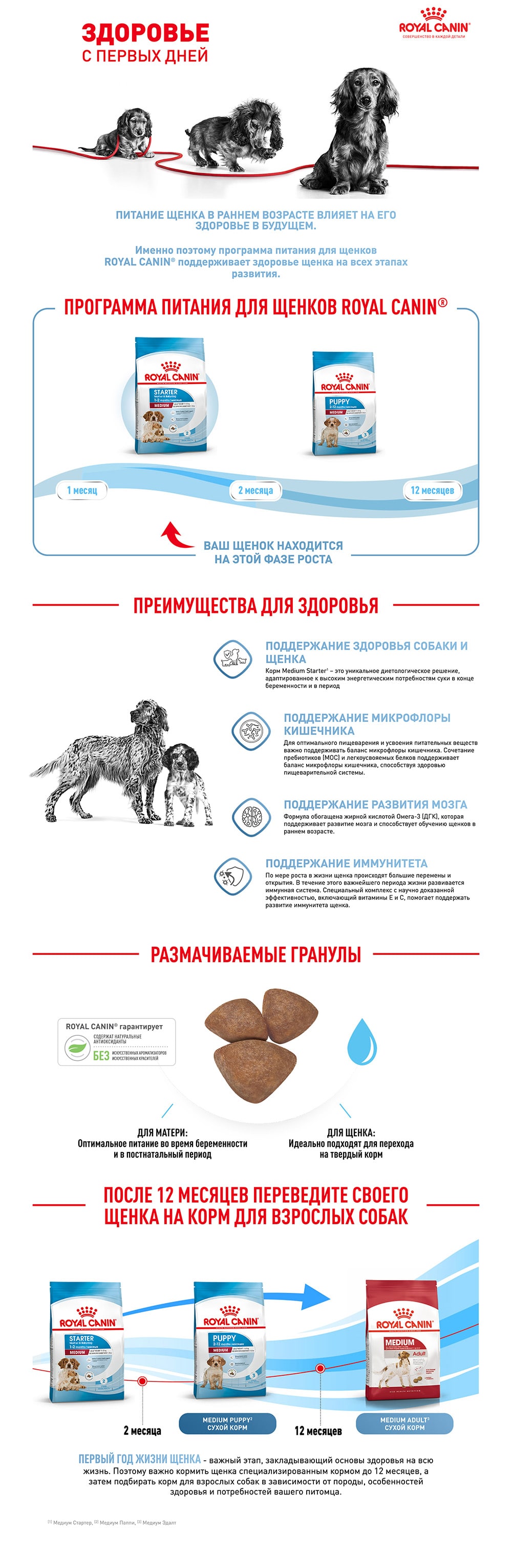 Royal Canin Medium Starter - сухой корм для собак в период беременности и лактации, а также для щенков в период отъема от матери и до 2-х месячного возраста.