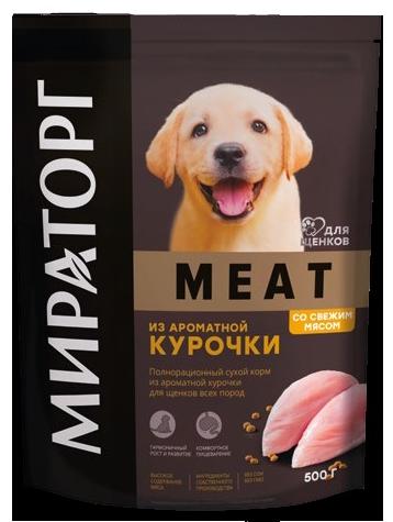 Мираторг Meat для щенков всех пород (Курица) - это полнорационный сухой корм из ароматной курочки для щенков всех пород.
