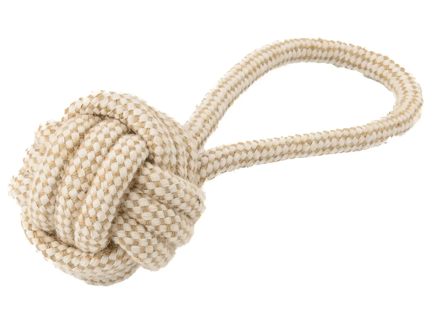 Mr.Kranch Мяч из каната на кольцевом шнуре, натуральный – игрушка для собак из хлопка.