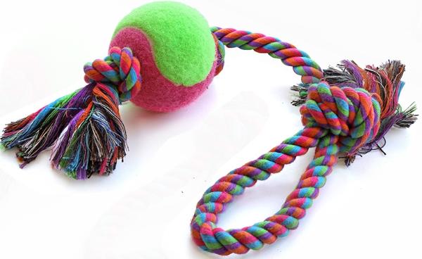 Triol Игрушка для собак "Веревка с петлей, 2 узла и мяч" - это веревочная игрушка для собак.