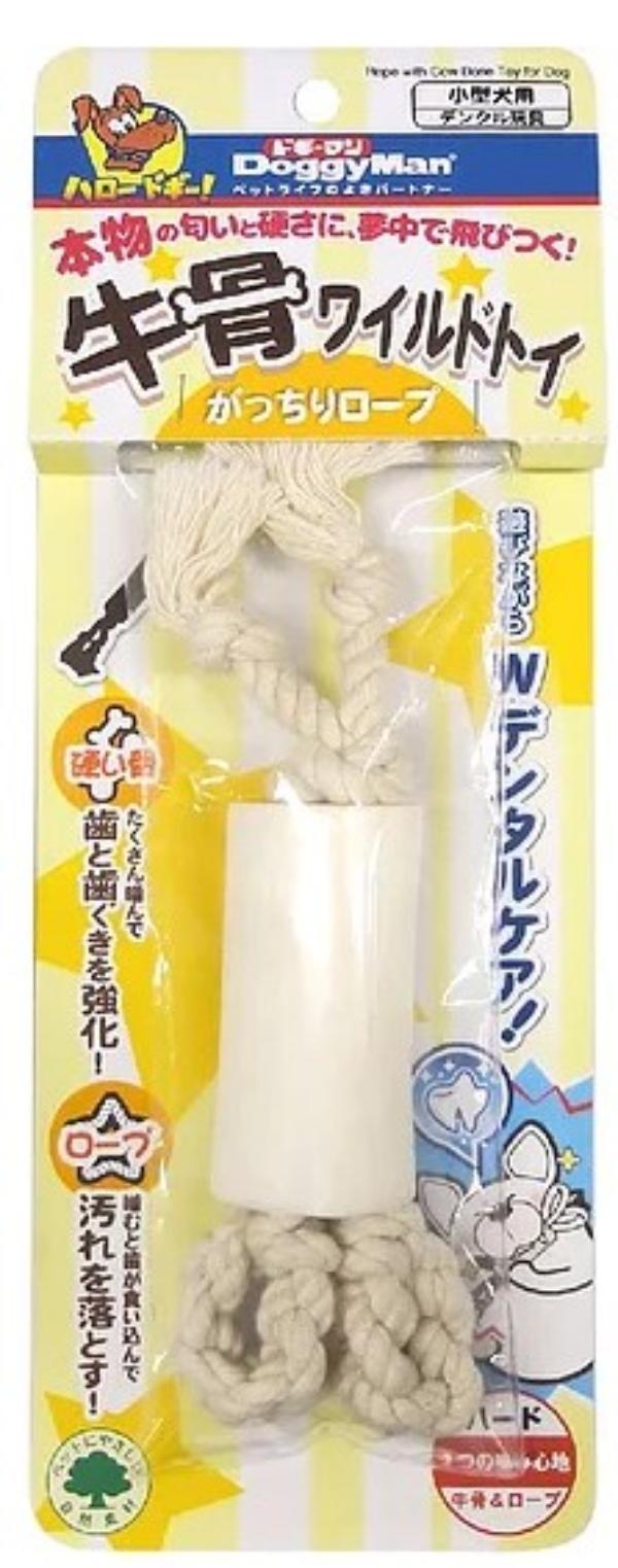 Кость дикого быка со статичной веревкой - это игрушка, которая представляет собой веревку из льна и прочного хлопка, продетую через полость бычьей позвоночной кости.