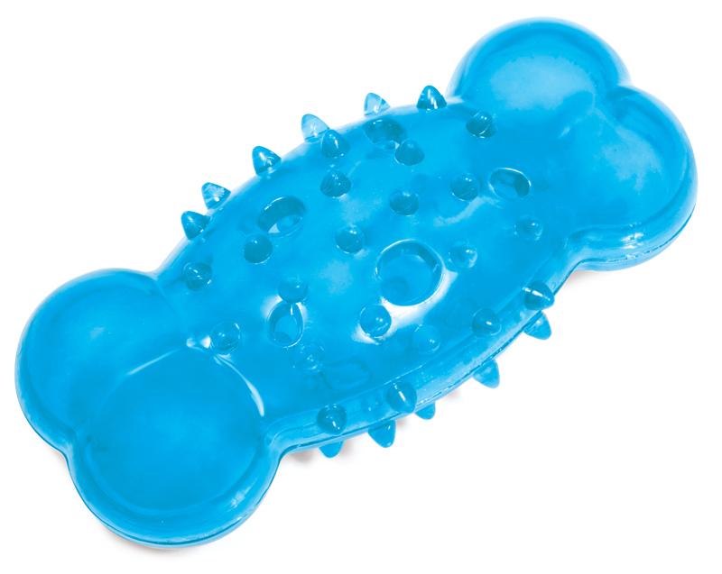 Термопластичная резина отличается большей упругостью, эластичностью при низких температурах и более длительным эксплуатационным периодом. Термопластичная резина мало подвержена химическому или термическому воздействию, не токсична и, в результате, обладает гипоаллергенными свойствами. Небольшие отверстия под лакомства в корпусе "косточки" позволят сделать игру или тренировку еще интереснее. Игрушка легко моется при помощи мыла и не требует особого ухода.