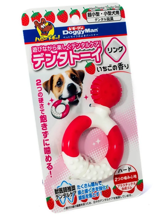 Жевательная игрушка в форме кольца клубника, жесткая - игрушка входит в серию ухода за зубами и деснами. Разработана совместно с ветеринарными врачами.
