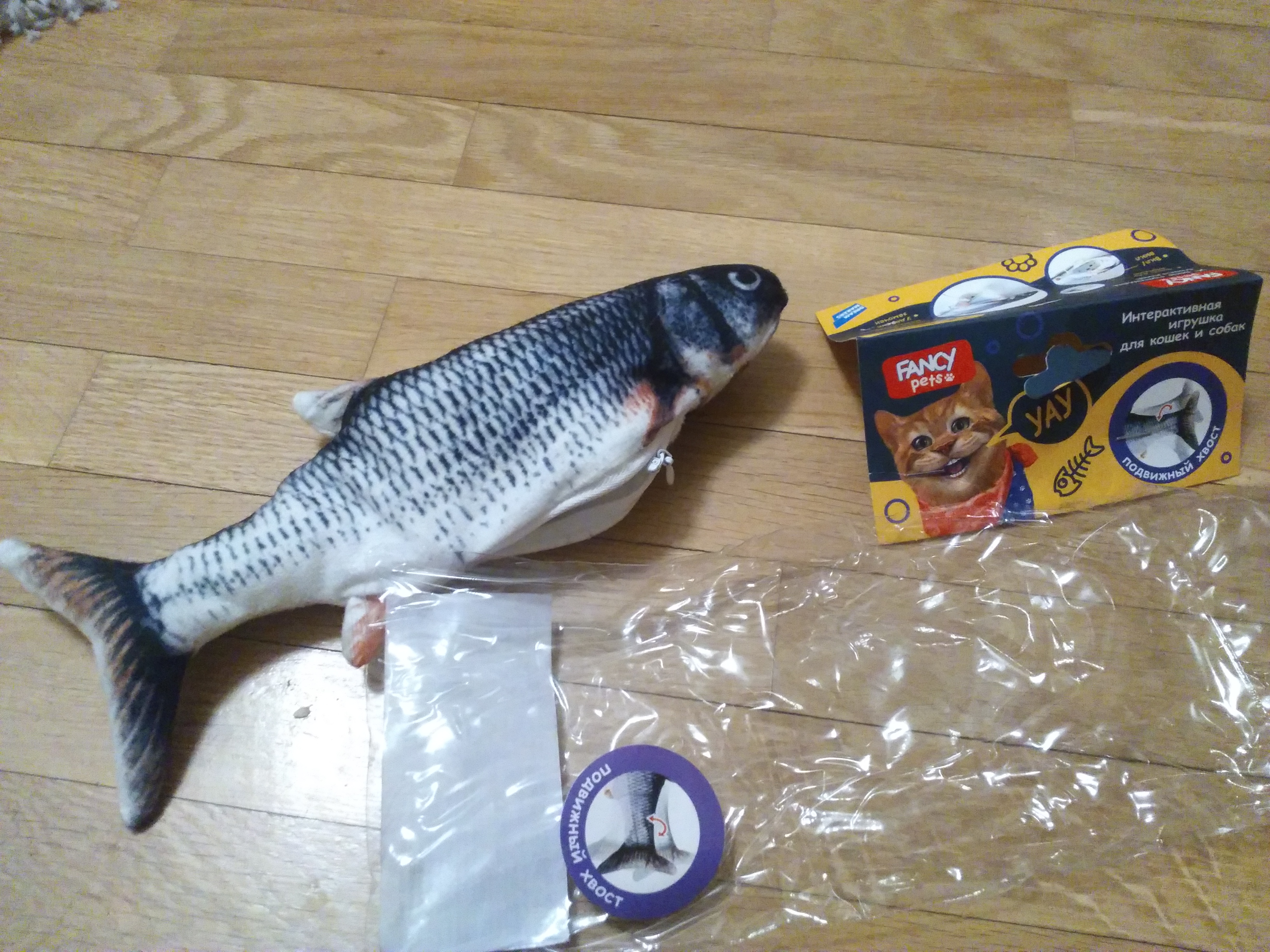 Интерактивная рыба для активных питомцев от Fancy Pets понравится вашему коту или небольшой собаке. Внутри игрушки находится моторчик, расстегните замочек и включите его – игрушка начнет двигать хвостом, как живая!
