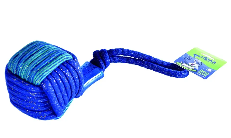PetStar Игрушка Мяч веревочный с канатом и резиновой вставкой