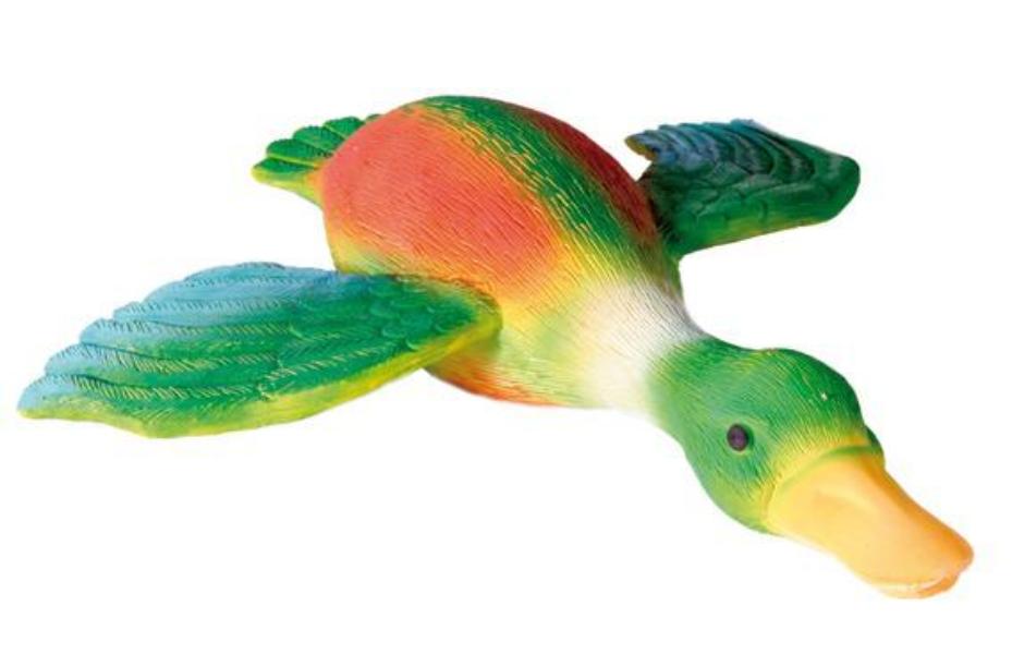 Утка пищит при сжатии, что еще больше раззадоривает собаку и настраивает на игру.