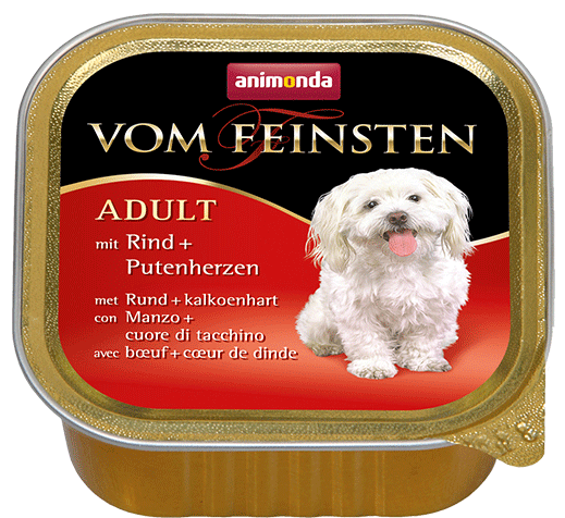 Vom Feinsten Classic (Говядина, сердце индейки) - это полноценный консервированный корм в виде нежного паштета, созданный для взрослых собак всех пород. Прекрасно подходит для привередливых питомцев.