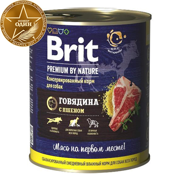 Брит Премиум Консервы для собак (Говядина с пшеном) — полнорационный консервированный корм для активных собак, с говядиной и пшеном.