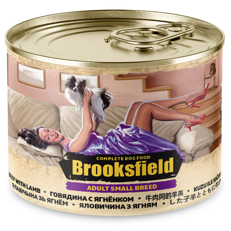 Brooksfield Adult Small Dog (Говядина, ягненок, рис) - полнорационный влажный корм для взрослых собак мелких пород.