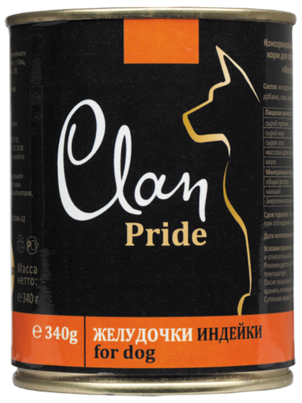 Clan Pride Желудочки индейки - это консервы для собак премиум-класса с натуральными желудочками индейки.