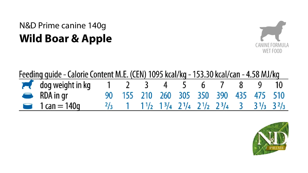 Консервы Farmina N&D Prime Dog Adult Mini (Кабан, яблоко) - это беззерновой полнорационный влажный корм в небольшой банке для собак со вкусом кабана и яблока.
