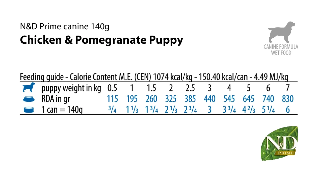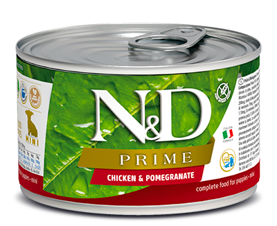 Консервы Farmina N&D Prime Puppy Mini (Курица и гранат) - это беззерновой полнорационный влажный корм для щенков, беременных и кормящих собак.