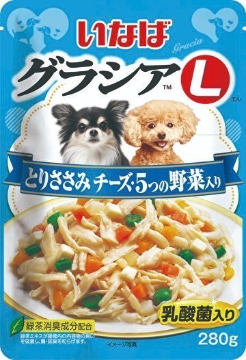 INABA Gracia L Куриное филе с сыром и овощами - полнорационный влажный корм для взрослых собак.