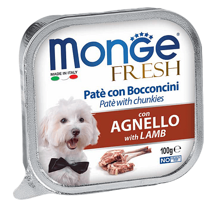 Monge Fresh Dog Паштет (Ягненок) — это полнорационный корм для собак. Паштет из мяса ягненка.