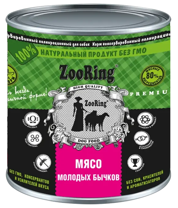 ZooRing Dog Паштет (Мясо молодых бычков) — консервированный полнорационный корм для всех пород собак.