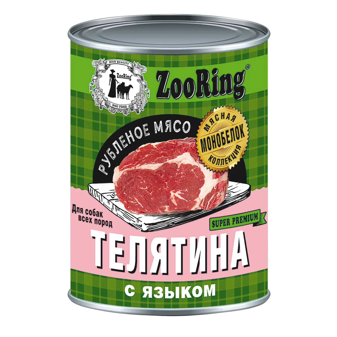 ZooRing Консервы для собак (Телятина с языком) — влажный монобелковый корм супер-премиум класса для привередливых собак всех пород.