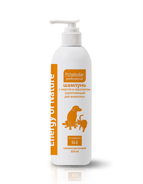 Energy of Nature Шампунь укрепляющий с пергой и кератином - это мягкое средство для животных с любым типом шерсти. Натуральный экстракт перги укрепляет и питает волосяные луковицы, кератин восстанавливает структуру шерсти и стимулирует кровообращение в кожном покрове. Активные компоненты сокращают период линьки и улучшают внешний вид шерсти.