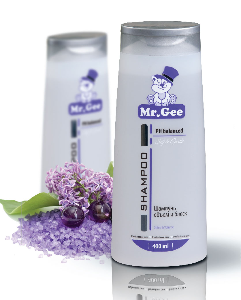 Шампунь Mr.Gee проникает в структуру шерсти, облегчает расчесывание, наполняет волос силой, питает и защищает. В состав включены экстракты алоэ, солода, пантенола и протеины пшеницы. Рекомендуется использовать для собак и кошек с мягкой и объемной шерстью.