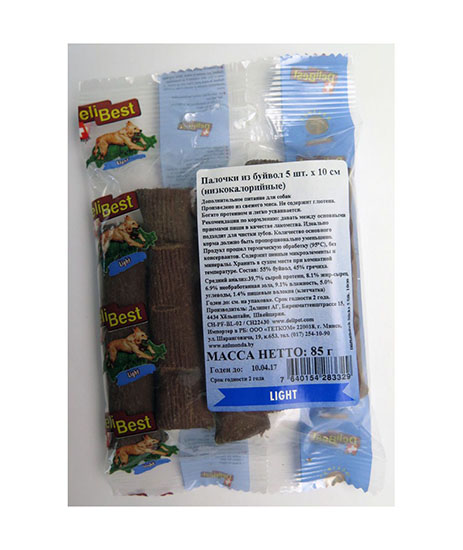 DeliBest Палочки из мяса буйвола, 5 штук по 10 см - это дополнительное питание для собак. В состав не входит глютен, лакомство легко усваивается и насыщает организм витаминами и минералами. Палочки прошли термическую обработку, хорошо очищают зубы и развивают челюсть.