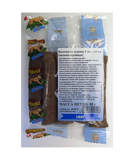 DeliBest Палочки из мяса ягненка, 5 штук по 10 см - это дополнительное питание для собак. В состав не входит глютен, лакомство легко усваивается и насыщает организм витаминами и минералами. Палочки прошли термическую обработку, хорошо очищают зубы и развивают челюсть.