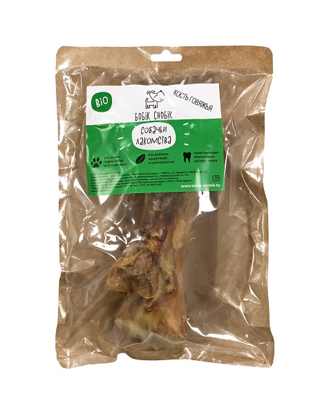 Бобик-Снобик кость говяжья - эксклюзивное натуральное сушеное лакомство для Вашей собаки. Вы надолго можете оставить своего питомца без присмотра, ведь он будет занят исключительно сгрызанием кости.