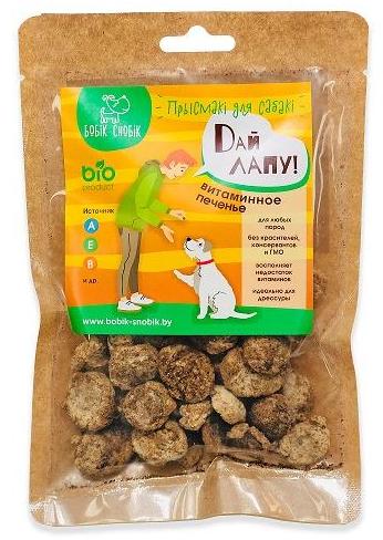 Бобик-Снобик Витаминное печенье для собак - печенье из натуральных ингредиентов, является прекрасным лакомством для собак, и идеально подходит для дрессуры. Позволяет поощрять собаку продуктом, не выбивающимся из привычного рациона - во избежание провокации аллергических реакций.