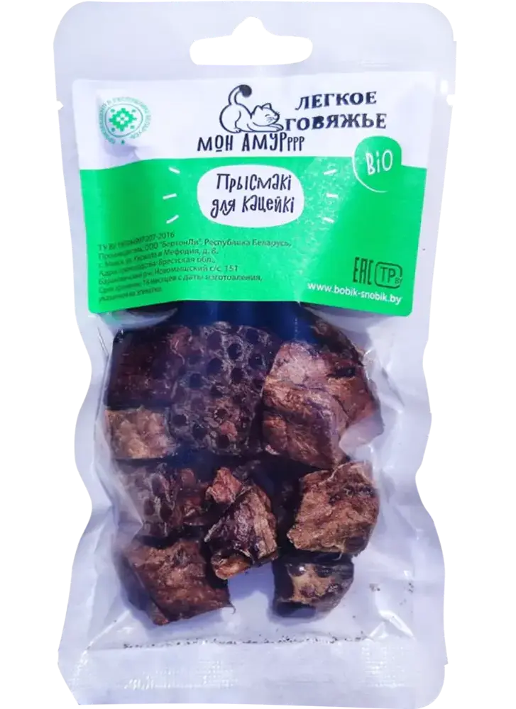 МОН АМУРррр Легкое говяжье сушеное – низкокалорийное, легкоусвояемое лакомство, которое благодаря большому содержанию коллагена и эластина способствует поддержанию здоровья кожи, шерсти, а также связок и суставов вашего четвероногого друга.