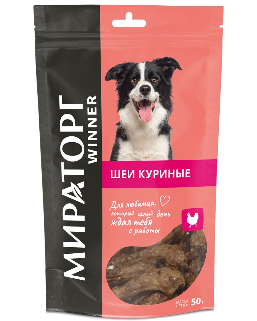 Мираторг Winner Лакомство Шейки куриные для собак - в высушенных куриных шеях содержится большое количество хрящевой и соединительной ткани, так что это отличный вариант для чистки зубов и массажа десен у собак.