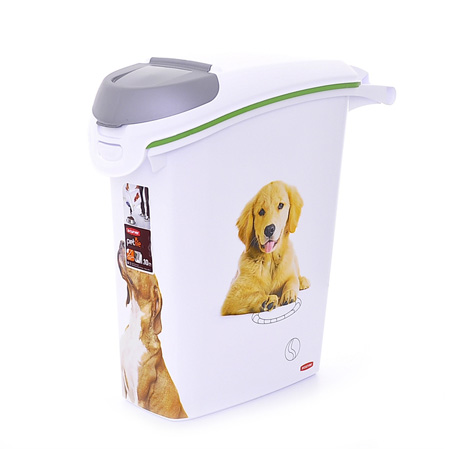 Оснащен ручкой на спине для удобной переноски и высыпания корма в кормушку, уплотнительной прокладкой для предотвращения распространения запахов, легкодоступным отверстием для повседневного использования и большой открывающейся крышкой для наполнения контейнера.