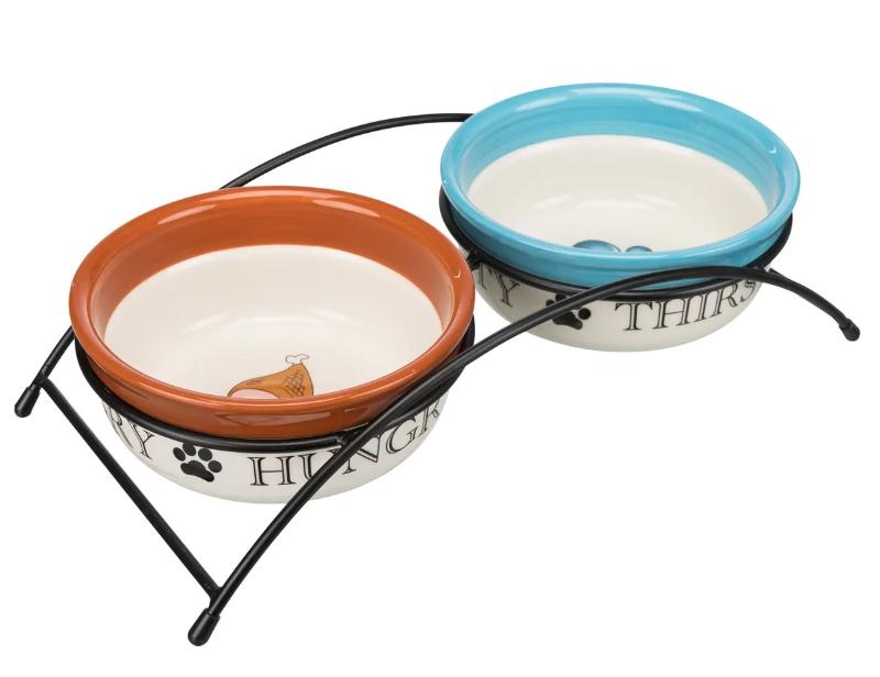 JollyPaw Набор мисок для собак с подставкой, голубая/коричневая