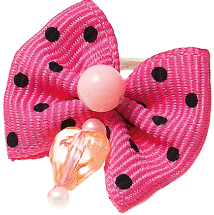 Бантик (пара) розовый с черным горошком (бусинка + сердечко)