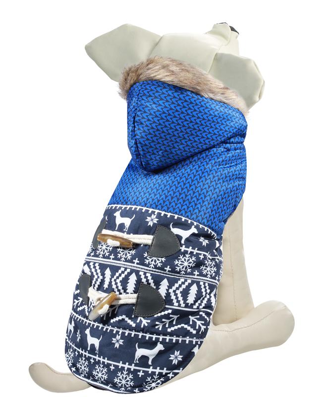 Утепленная попона "Зимняя сказка" с капюшоном для комфортных прогулок даже в самую ненастную погоду. Попона украшена двумя необычными застежками-клевантами на спинке.