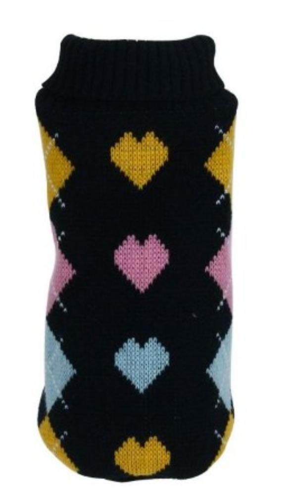 ДиАнКари Черный свитер сердце и ромб - это теплый и красивый свитер для собак.