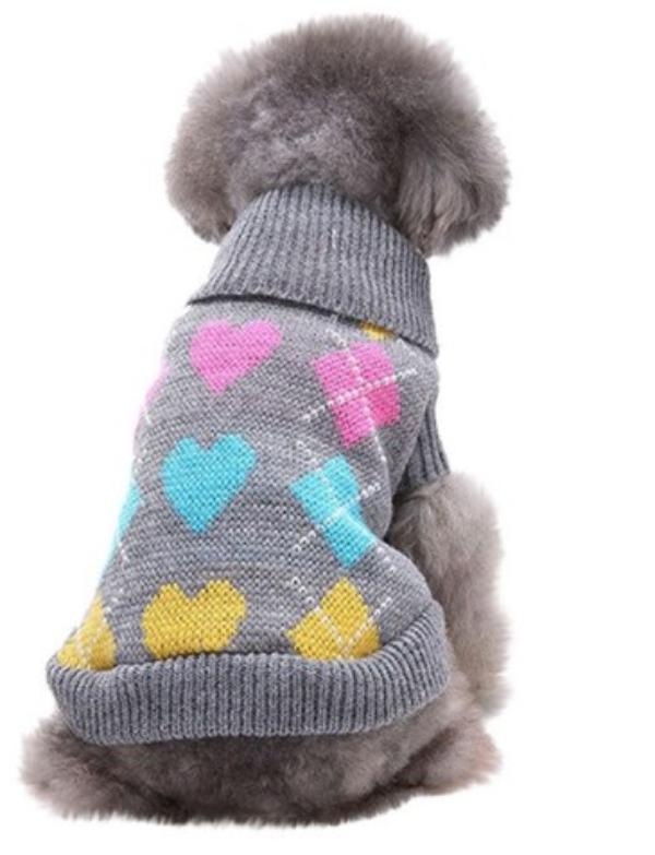 ДиАнКари Серый свитер сердце и ромб - это теплый и красивый свитер для собак.