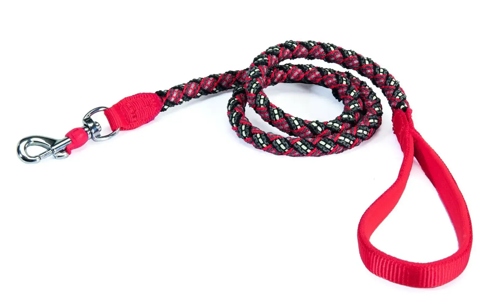 Очень приятный на ощупь прорезиненный поводок со светоотражающей нитью для лучшей видимости в вечернее и ночное время и мягкой неопреновой ручкой для комфорта и удобства хозяина.