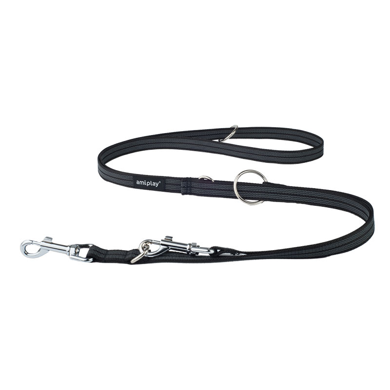 Amiplay 6 in 1 Rubber (Черный) - это качественный поводок, подходящий для выгула одной или сразу двух собак.