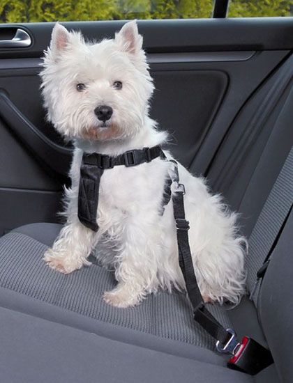 Он обеспечивает безопасность животного во время езды. Поводок состоит из прочного карабина, а также крепления к ремню безопасности в машине. Регулировка осуществляется с помощью специального пластикового зажима.