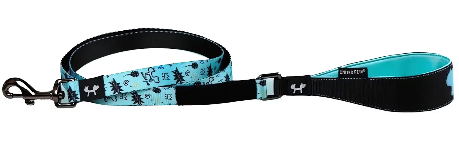 United Pets Поводок Complete me Writing, голубой с рисунком — нейлоновый поводок с удобной ручкой из микрофибры для большего комфорта. Прочная фурнитура из нержавеющей стали.