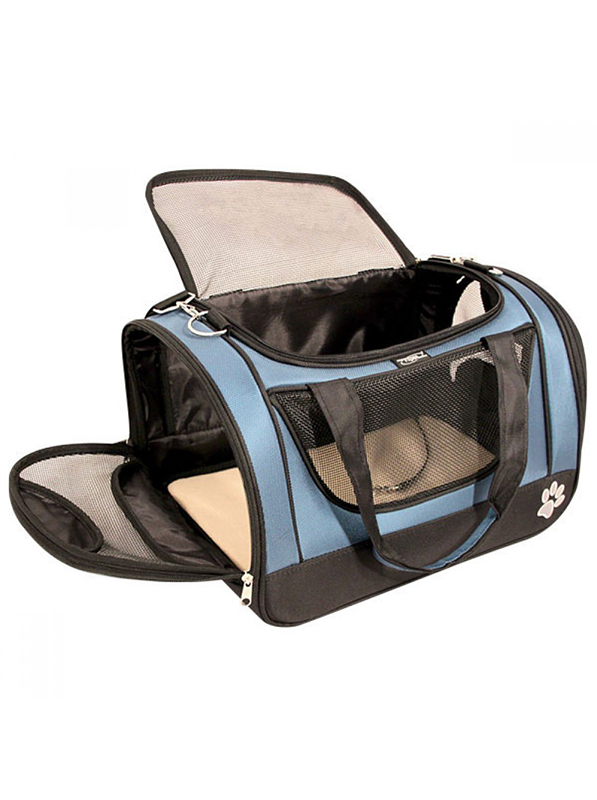 В комплект входит поводок-фиксатор, двусторонняя (с одной стороны флисовая) подстилка без липучек и дополнительный ремень на плечо с мягким бегунком.