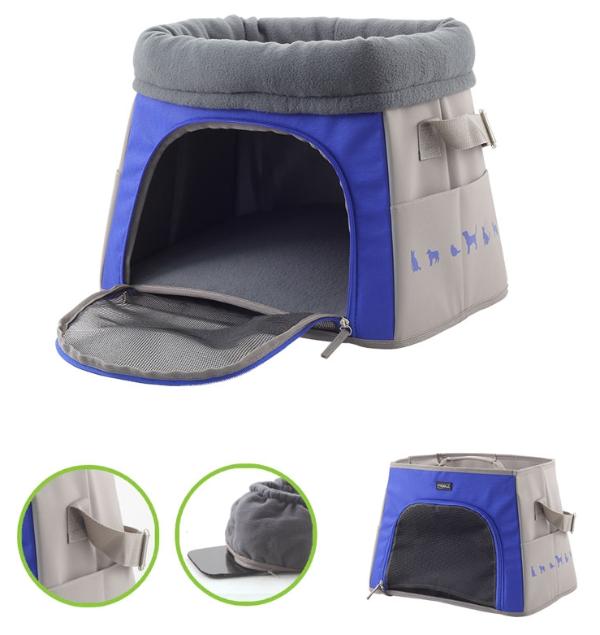 Данная сумка имеет 3 различных вида использования - в качестве переноски, домика с мягким флисовым ковриком на первом этаже и лежанки с мягкими бортами на втором этаже сумки.
