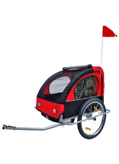 Велоприцеп с сигнальным флажком.