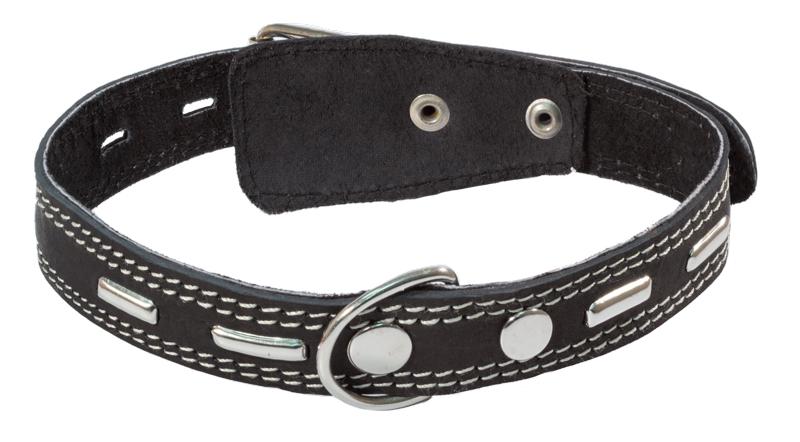 Одинарное изделие выполнено из мягкой, но прочной кожи высокого качества с использованием оригинальной металлической фурнитуры в качестве декора. Предусмотренные отверстия позволяют удобно подгонять длину под индивидуальные параметры животного, а функциональное металлическое кольцо отлично подойдет для крепления карабина поводка, адресника или других аксессуаров.