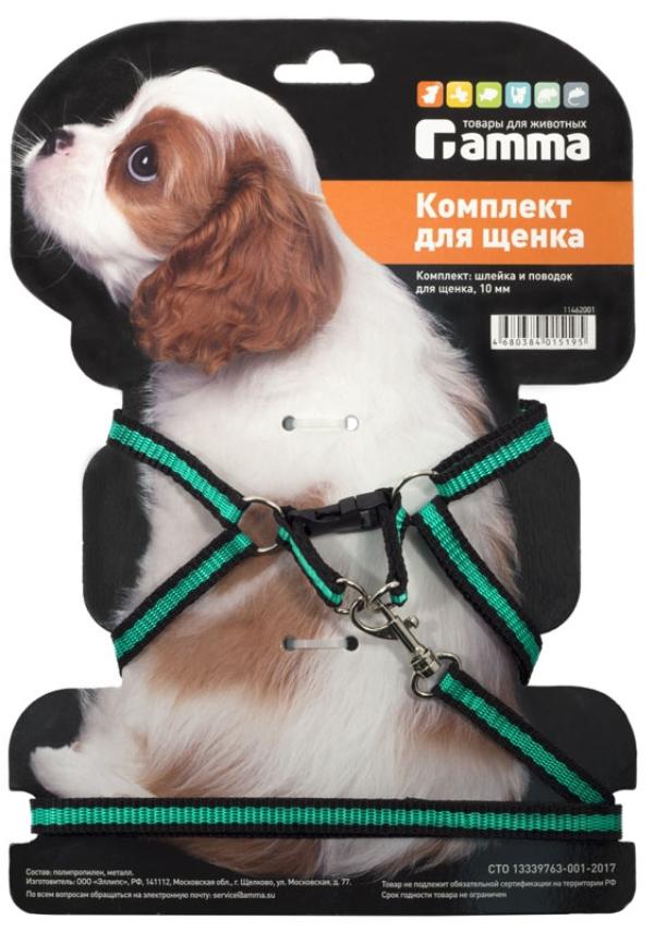 "Гамма" Шлейка и поводок - это практичный и функциональный комплект для щенков, который включает изящную шлейку и яркий поводок, изготовленные из качественного капрона с использованием металлической и пластиковой фурнитуры.
